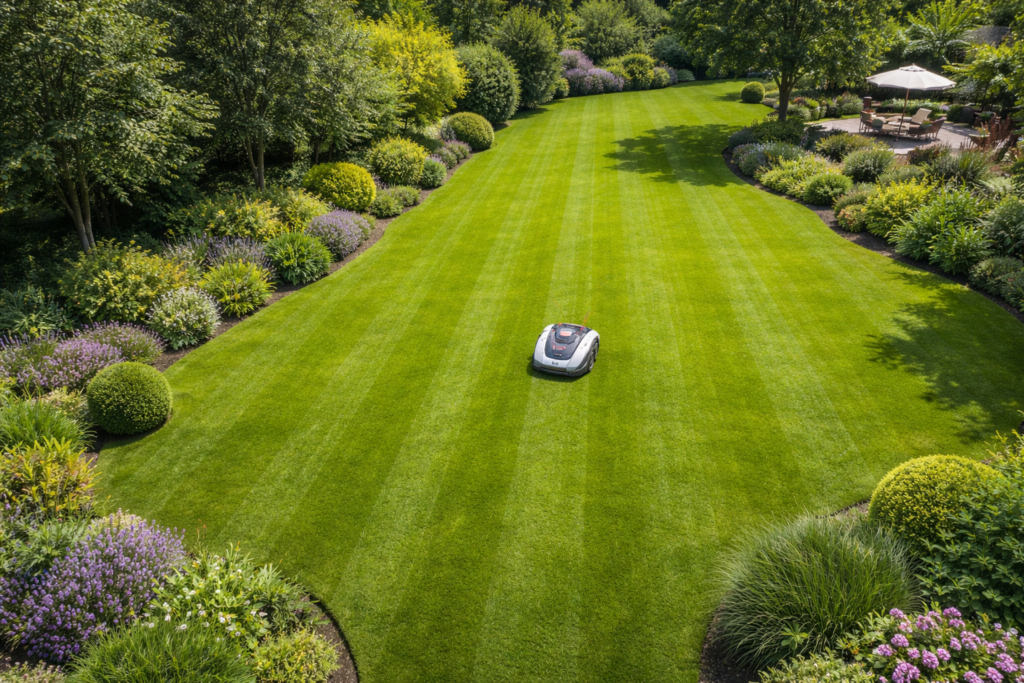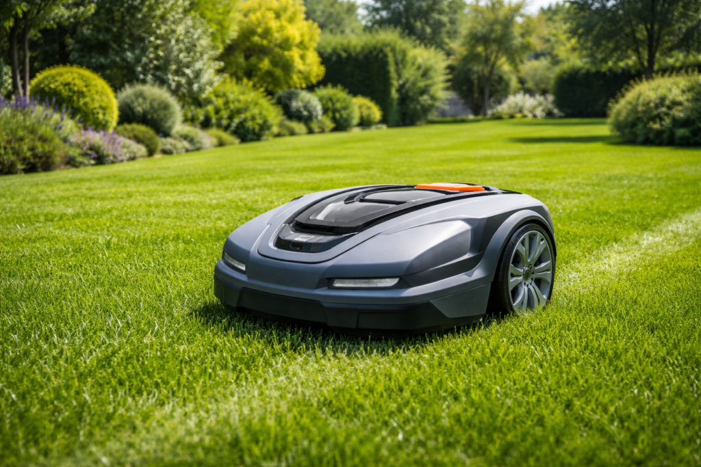 Le robot tondeuse travaille en autonomie pour entretenir votre gazon au quotidien.